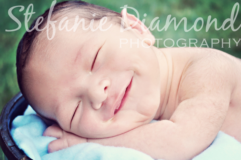 I loved every minute of my session with the adorable baby Nate. Ok maybe everything except for the heat. Nate and his proud mamma braved what was the 2nd hottest day in New Jersey history (or something like that) for their newborn session. One thing about newborns is that they like to be warm…very warm. So when I have sessions in the studio I crank up my space heater and the baby sleeps soundly while mom and I sweat it out. The outdoors acted as our space heater and we took our water bottles and props outdoors and held the session in the yard (under the shade of a tree!) The heat and white noise lulled him to sleep and his mom and I enjoyed some grown up company and baby Nate.