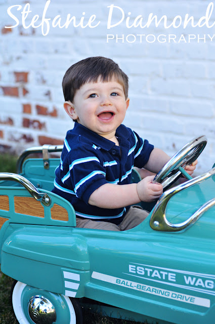 I first met this little dude just a few days after he was born, and have had the honor to watch him grow month by month! I’m not sure I know a happier baby, and that smile on his face literally goes from ear to ear. Daniel’s first birthday session was so much fun – we played outside for a while and then came in for our cake smash. And that vintage car – I’m in love. I’m always scouting for new props and when I saw this one 4 hours from home, I had to buy it. Mr. Stefanie Diamond Photography wasn’t so happy that he had to cram all of our luggage (and dog) from a weekend away around it though. Oh well, that’s what I do for great props!