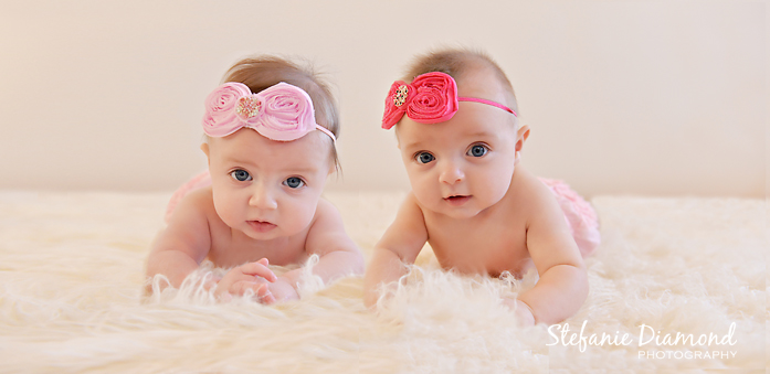 Meet 4 month old twins Ayelet and Meira. Two gorgeous sisters with the most incredible eyes I’ve ever seen. I was supposed to photograph them at a few days old, but some little storm named Sandy came and put a wrench in our plans. I’m thrilled that we were able to capture this sweet stage – no longer newborns, but not yet ‘sitters’, these two were an absolute pleasure.