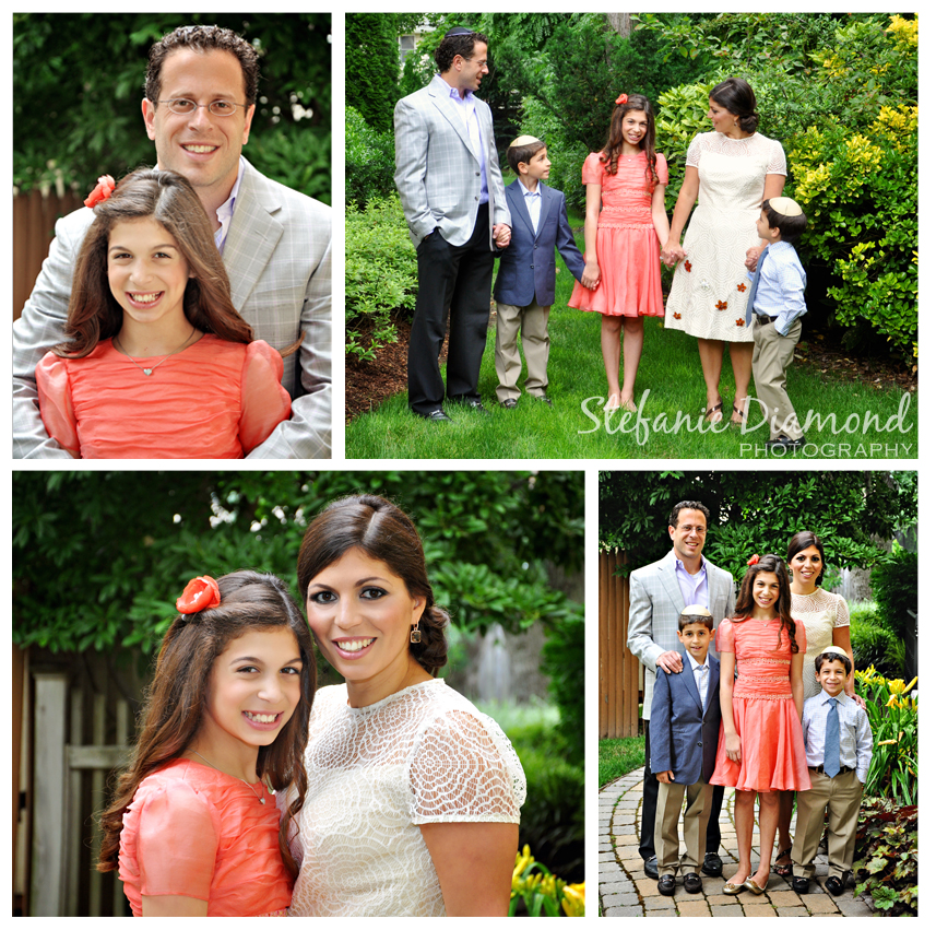 In my head, Olivia is still about 5 years old. When I first met her, Olivia was a beautiful little girl with dark skin, big brown eyes, and deep dark hair. While I’ve seen Olivia many times over the years, seeing her in her bat mitzvah dress is when it hit me how much she’s grown. As pretty a kid as she was, she’s an even prettier pre-teen. I was honored to shoot bat mitzvah portraits for her family, and was thrilled when one of their friends not only allowed us to use their yard – but planted gorgeous flowers specifically for the shoot. That’s true friendship 🙂